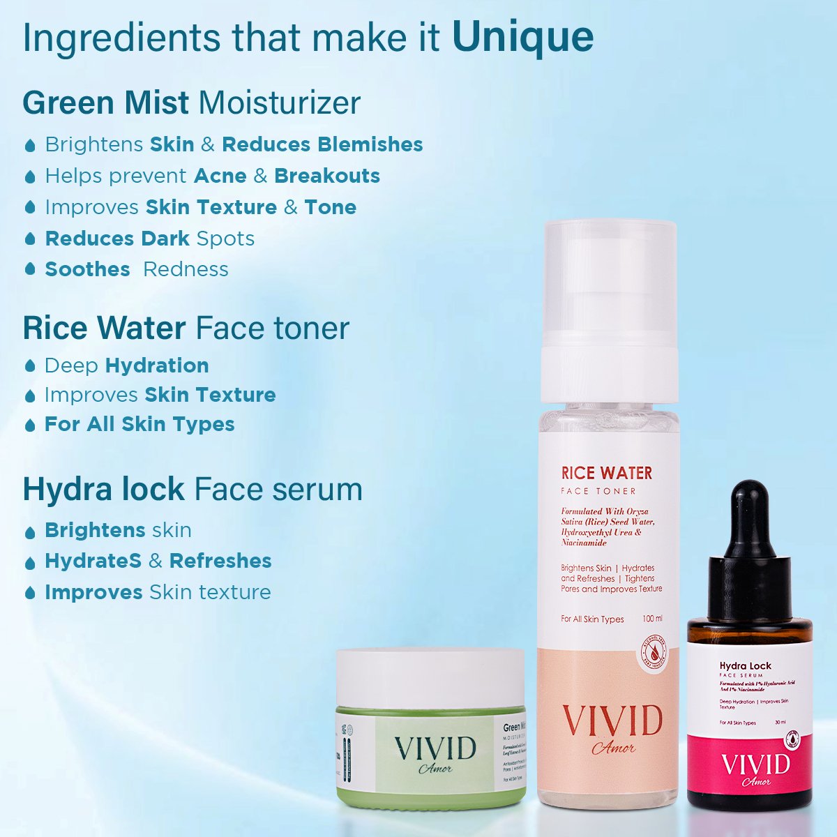 For best results, use the toner twice daily (morning and night), the serum after toning, and the moisturizer after the serum.